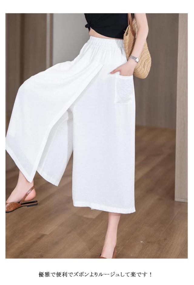 | ゆったりワイドシルエットだから、体型カバーも◎2 in 1 スカートパンツ スカートのようなズボンは着た瞬間、 下半身のぜい肉を隠してやせて見えるんです、 優雅で便利でズボンよりルージュして楽です! 快適で涼しくい冷感生地、通気性が良く、全然ムレない、夏を涼しく快適に過ごしましょう。 | |