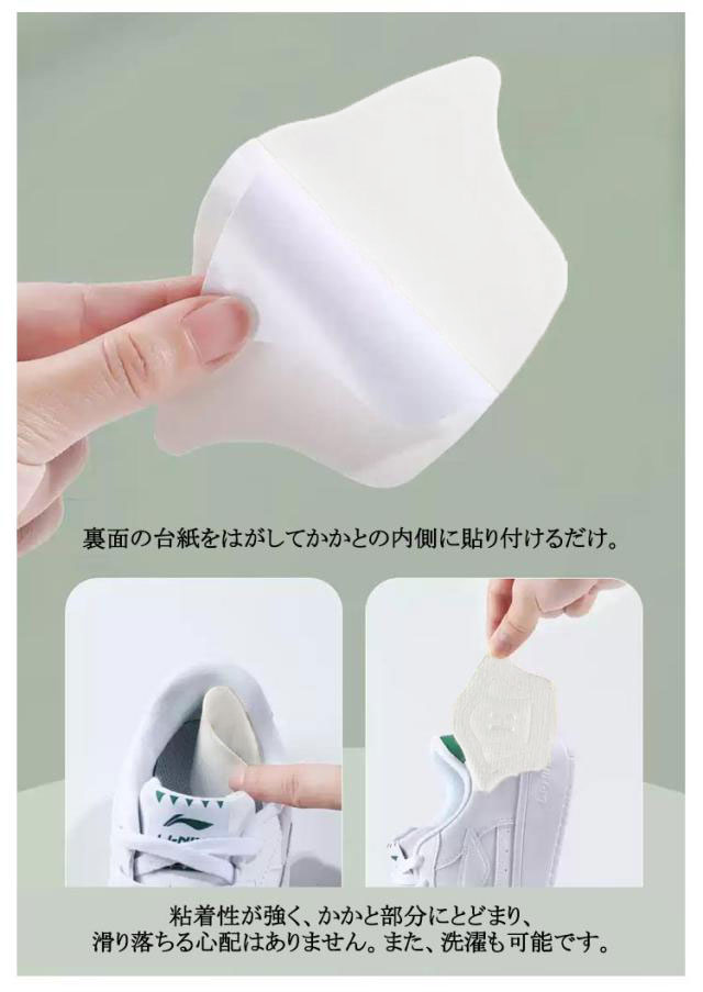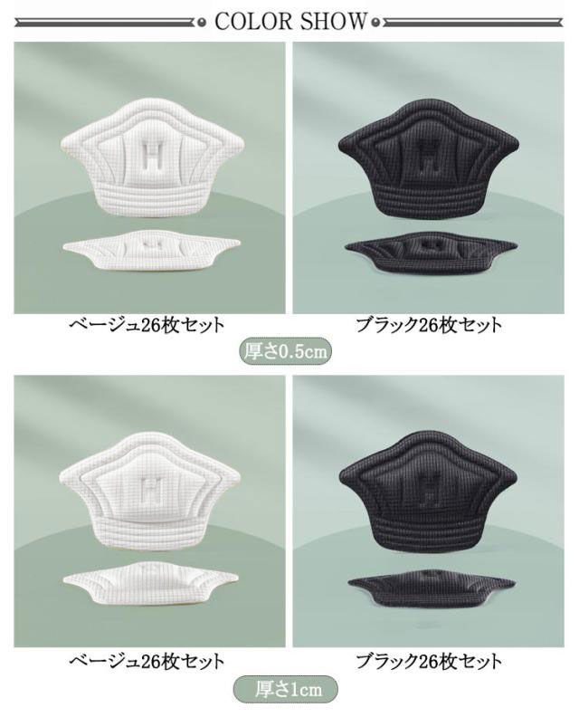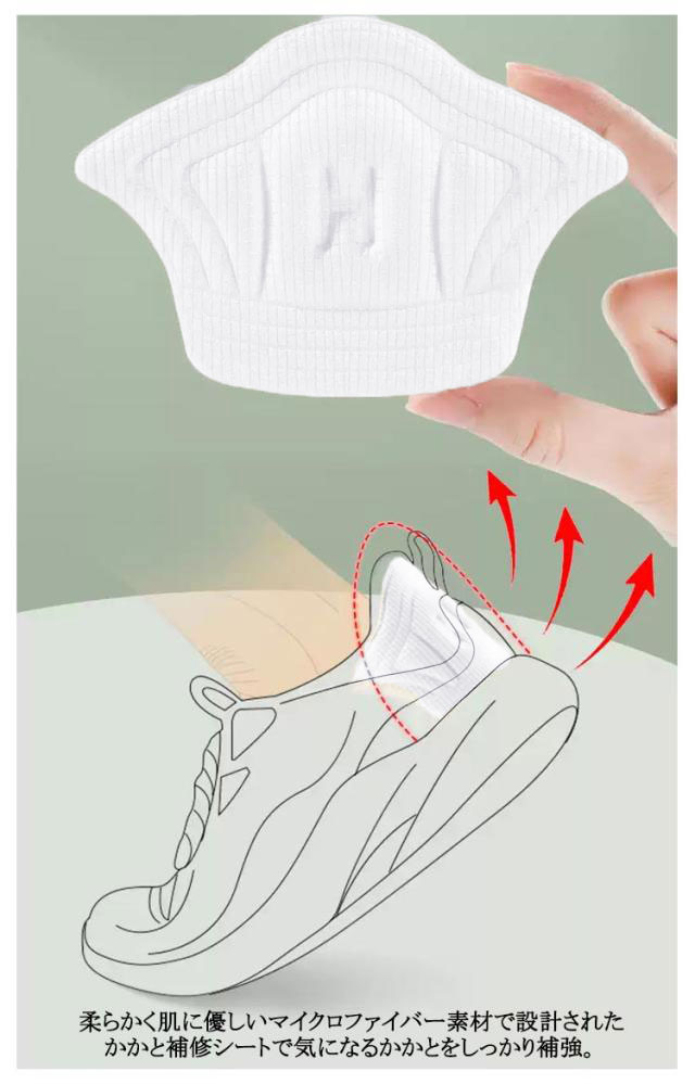 | 自由にカット可能! かかと補修シート 26枚セット 厚み選べる 擦り切れや穴を隠してカバー、靴サイズが大きすぎる場合の補助パッドとしてもOK! 柔らかく肌に優しいマイクロファイバー素材で設計されたかかと補修シートで気になるかかとをしっかり補強。 裏面の台紙をはがしてかかとの内側に貼り付けるだけ。 かかとの高さや形状に合わせて自由にカットできます。 厚みのあるデザインなので、運動中に減圧効果とクッション効果があり、かかとをしっかり保護します。 大小2枚を10セットで合計20枚セットにすることにより予備用としてなどお得なセットにしました。 粘着性が強く、かかと部分にとどまり、滑り落ちる心配はありません。また、洗濯も可能です。 | |