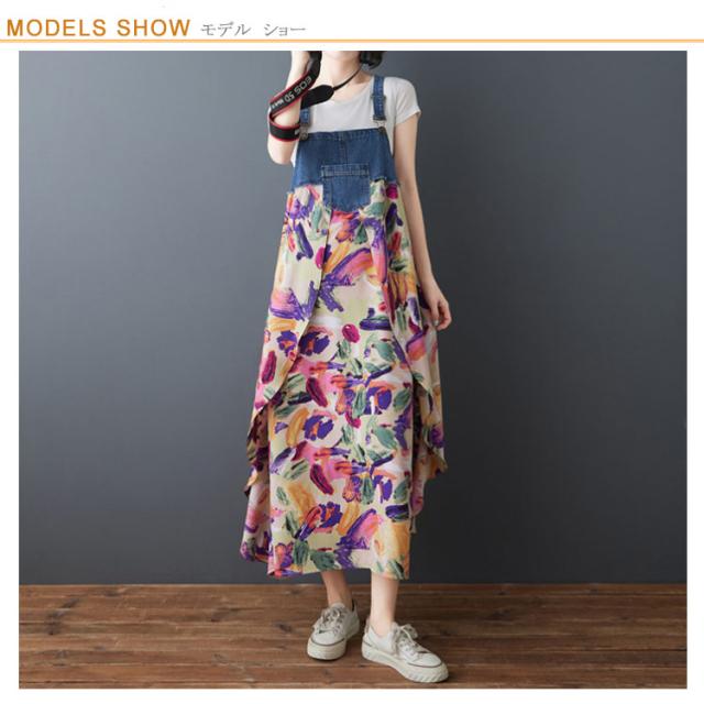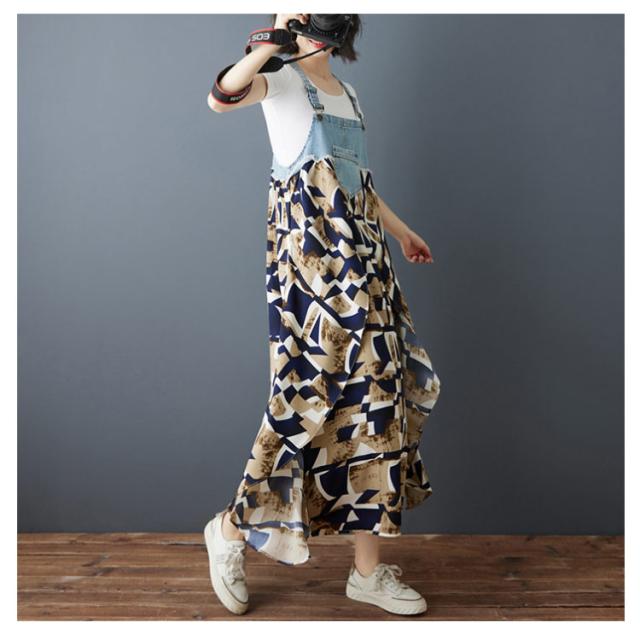 ジャンパースカート ジャンパースカート シフォン 異素材 切り替え ノースリーブ 袖なし フレアワンピース シフォンドッキングデニムジャンパースカート 春