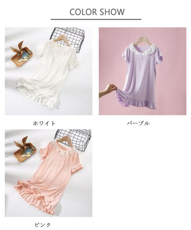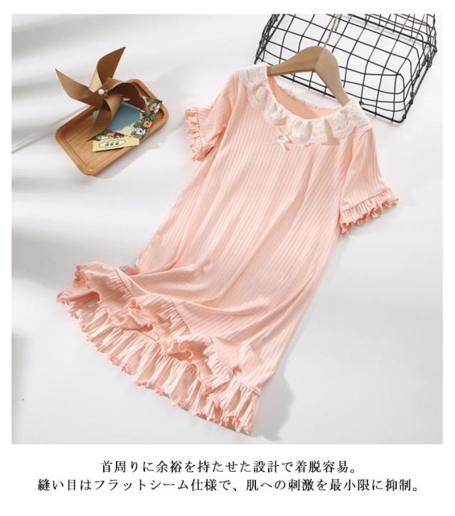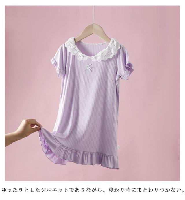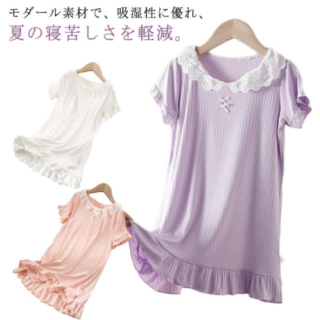 ワンピース ゆったり シンプル 寝巻き 子供用パジャマ ナイトドレス モダール パジャマ 子供用パジャマ レース付き 薄手パジャマ 女の子 夏用 部屋着 無地 ルームウェア 快適ネックライン 型崩れ防止 ギフト おしゃれ