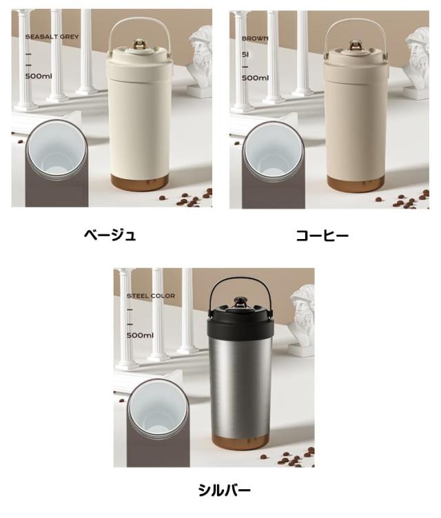 | 500ml /保温・保冷/3WAY自由選択 3WAY飲み方! 直飲み、広口、フタに付いてるストローを使ってもOK。 密封設計でしっかり漏れを防止:中身の液体漏れを気にせず安心して持ち運べます。 多層構造が熱を逃さず、温かさ長持ちしっかりキープ、夏で保冷もいい。 セラミックコーティング処理、マグカップなどの陶器製品と同じ材質に飲み物本来の風味や香りをしっかり楽しめる! 500 ml大容量で水、コーヒー、ジュース、コーラなどを入れてもいいです。 シリコン素材の持ち手で持ちやすさアップ、アウトドアでも携帯便利。 広口デザイン:洗いやすく、細菌を繁殖させにくい。 滑り止め底部:テープル上での滑りを防ぎ、安定性を高める。 | |