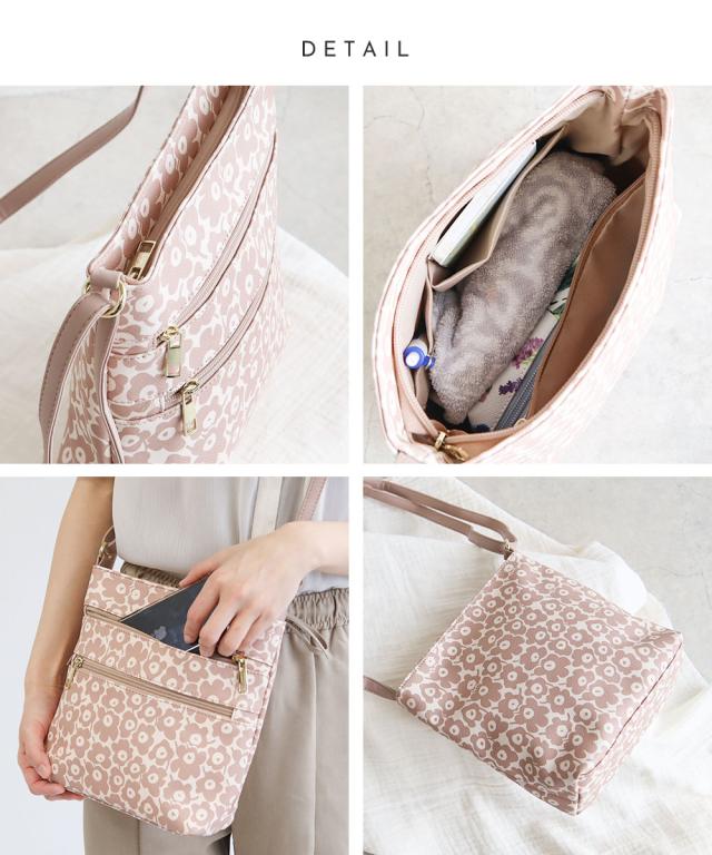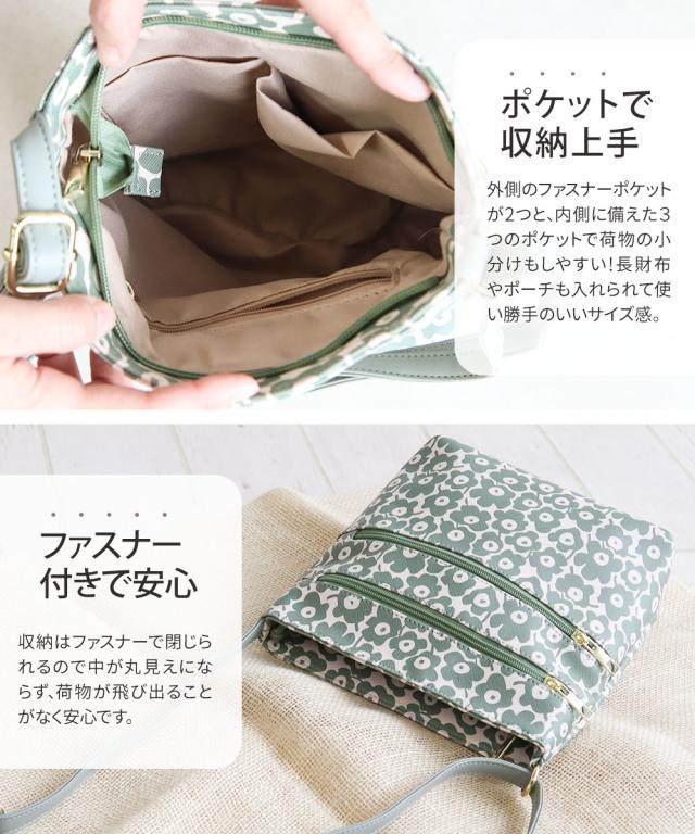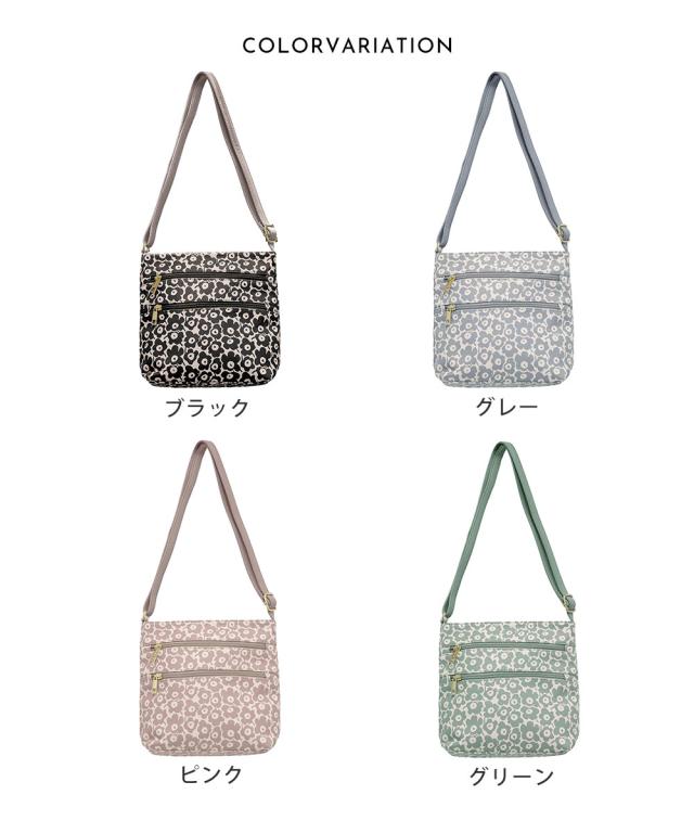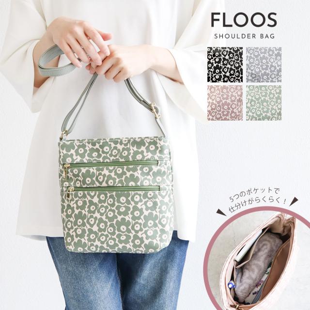 ショルダーバッグ レディース 斜めがけ 軽量 軽い 小さめ 大人 ファスナー ミニバッグ 通勤 旅行 収納 整理整頓 かわいい おしゃれ シンプル カジュアル 春 夏 秋 冬 婦人 女性物 バッグ 鞄 かばん 北欧 花柄 フラワー FLOS 黒 ブラック グレー ピンク グリーン