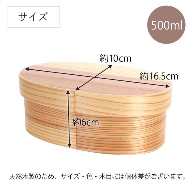 曲げわっぱ 食洗機対応 電子レンジ対応 500ml 小判型 お弁当箱 1段 天然木製 曲げわっぱ弁当箱 まげわっぱ ランチボックス レンジ可 国内加工品 男子 女子 大人 子供 おしゃれ 遠足 小さめ かのりゅう 送料無料