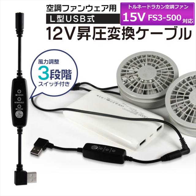 トルネードラカン 空調空冷服 ファン 2021年モデル 15V FS3-500 対応 USB昇圧 アダプター トルネードラカン対応 ファン 空調ウェア 空調ファン付き作業服 12V L型 モバイルバッテリー QC3.0 USB-A 昇圧ケーブル 変換アダプタ 熱中症対策 熱中症予防 スイッチ付き 【12V-A】