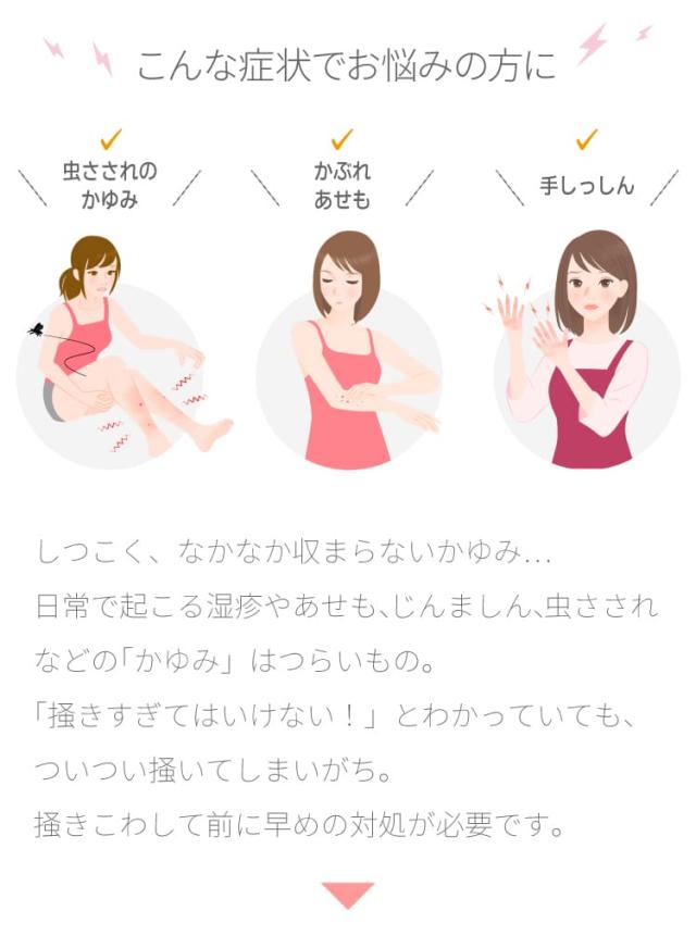 湿疹、皮膚炎、あせも、かぶれ、かゆみ、虫さされ、じんましん