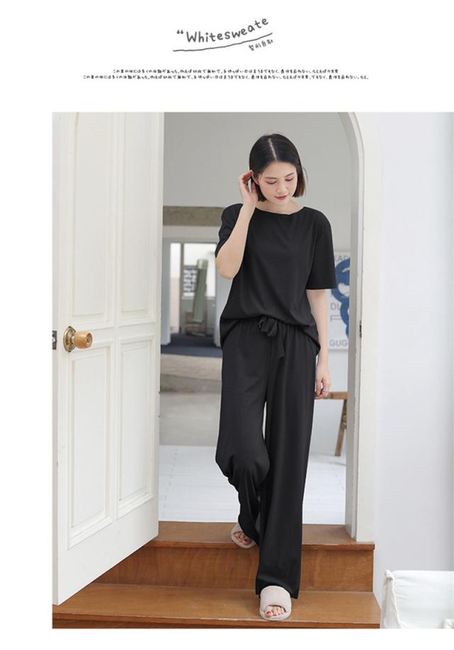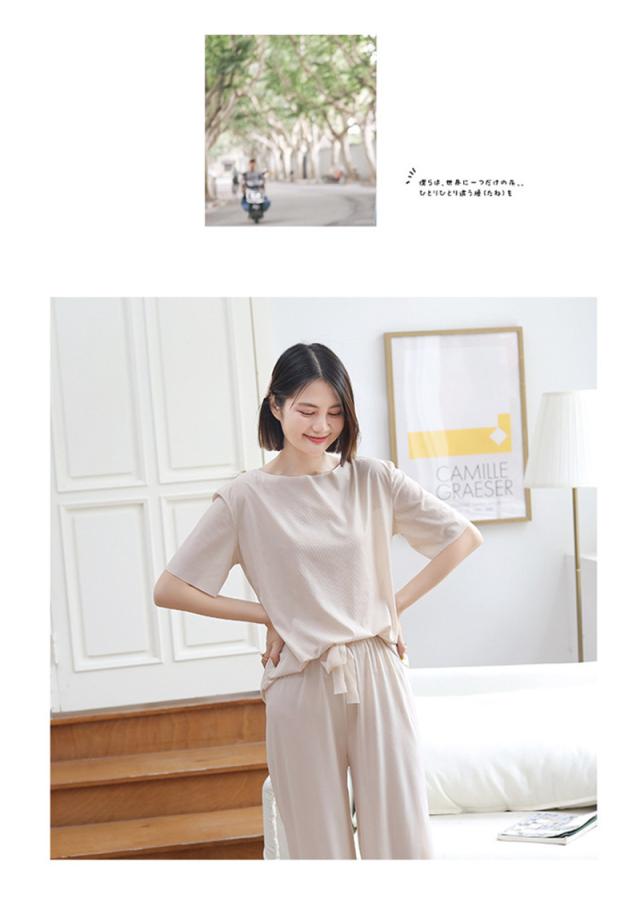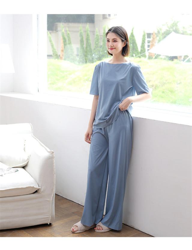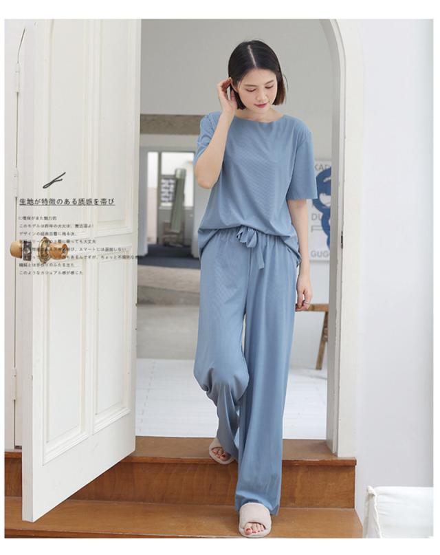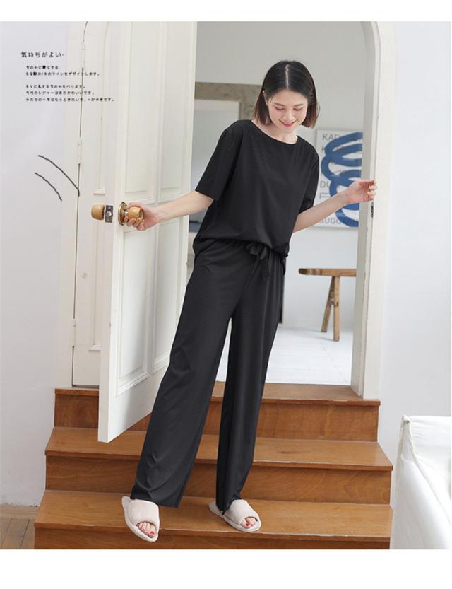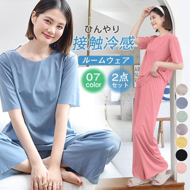 ルームウェア レディース パジャマ 上下セット 楽ちん リブ ショーツ 2点セット 半袖 ロングパンツ ウエストゴム 可愛い 部屋
