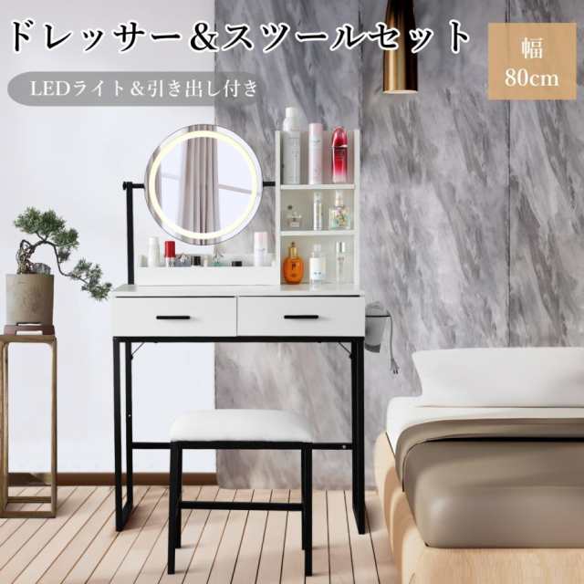 ドレッサー化粧台 テーブル 鏡台 LEDライト付き スツール付き 引き出し 収納 サイド収納 メイク台 シンプル 大容量 可愛い