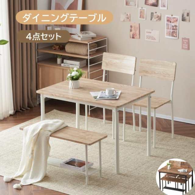 ダイニングテーブルセット 4人用 4点セット ダイニングセット スチール 食卓 チェア2脚ベンチ1脚 幅110 コンパクトサイ