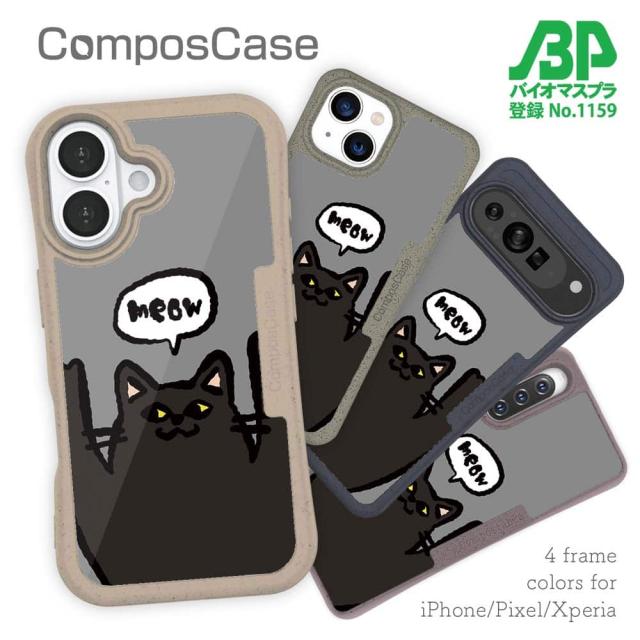コンポスケース & 着せ替え デザインシート セット iPhone16e ケース iPhone16 Pro iPhone16 iPhone15 Pro iPhone15 iPhone14 Pro iPhone14 iPhone13 猫 ネコ ワーイなネコ_黒猫(wakat)