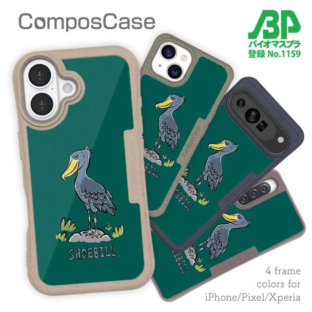 コンポスケース & 着せ替え デザインシート セット iPhone16e ケース iPhone16 Pro iPhone16 iPhone15 Pro iPhone15 iPhone14 Pro iPhone14 iPhone13 ハシビロコウ(wakat)