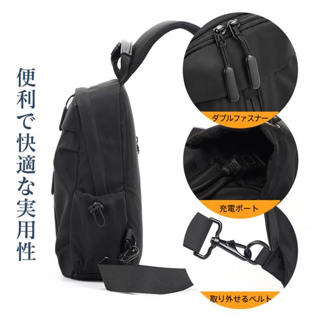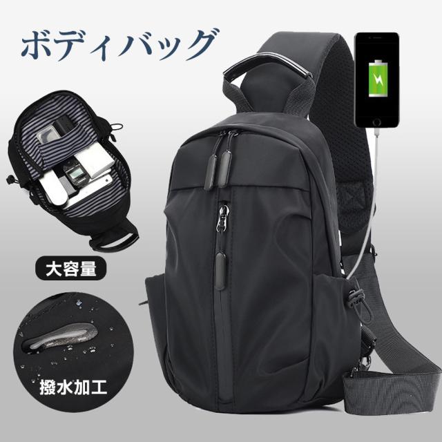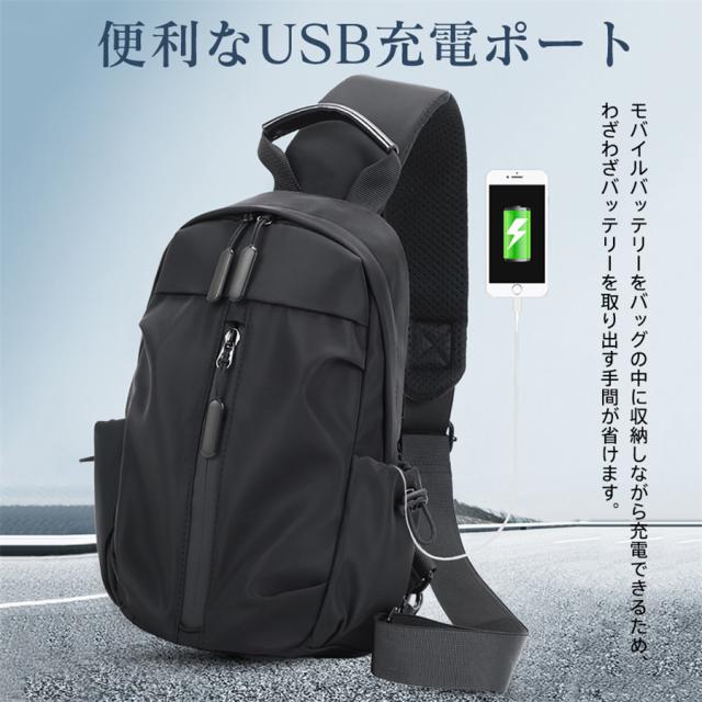 ボディバッグ メンズ レディース ショルダーバッグ 軽量 手提げ 斜め掛け ウエストポーチ 無地 肩掛け 撥水加工 充電ポート 大