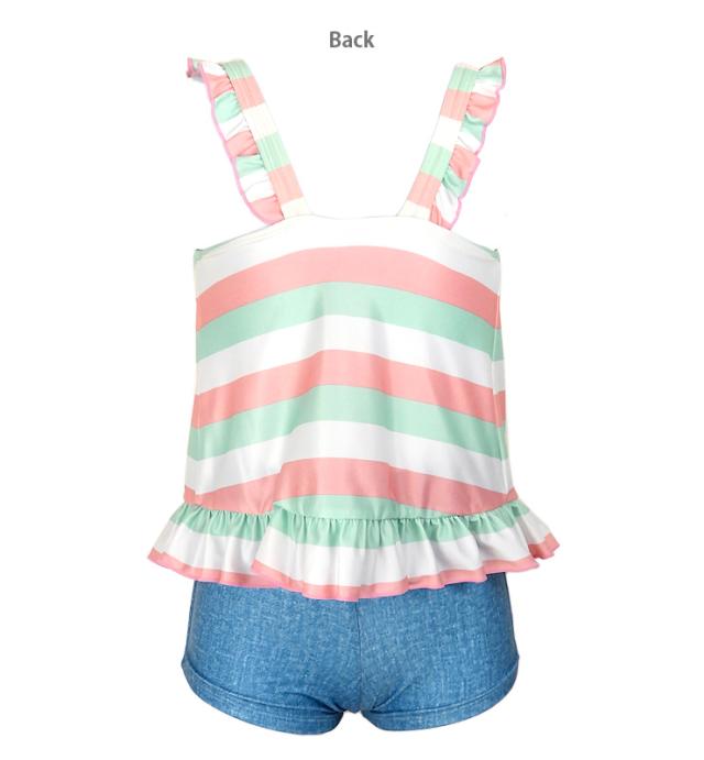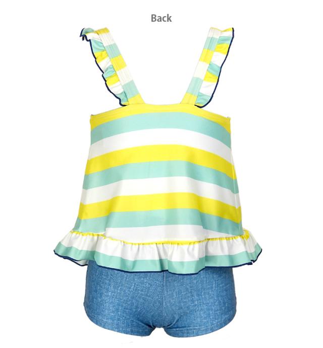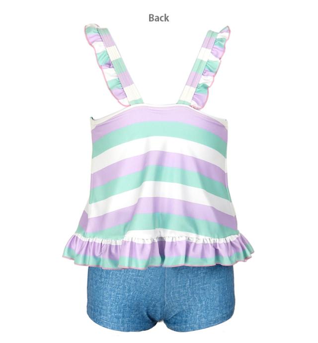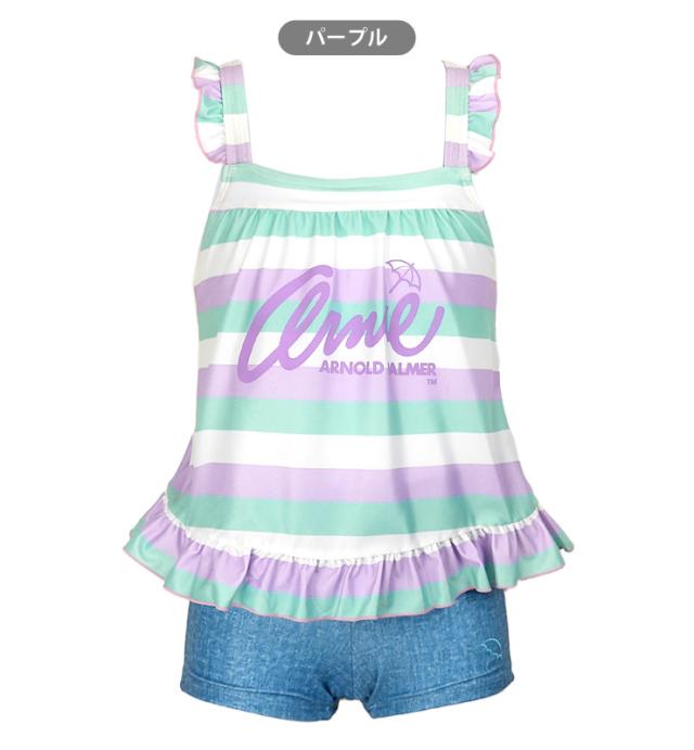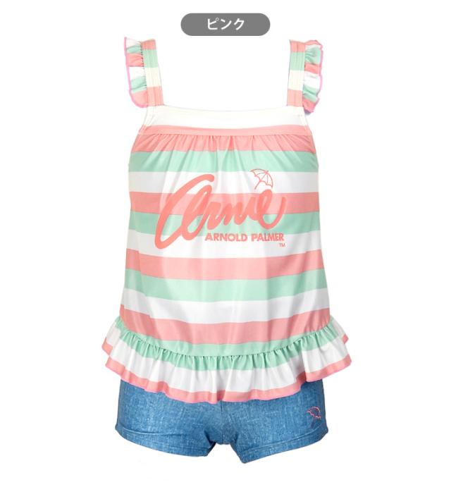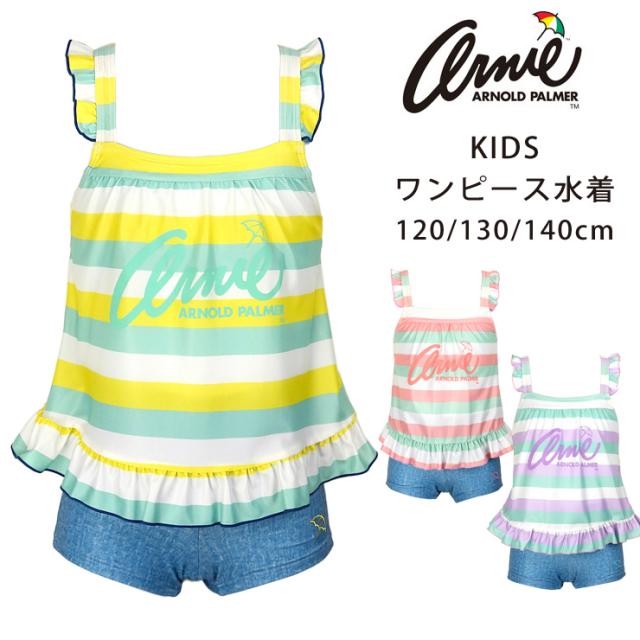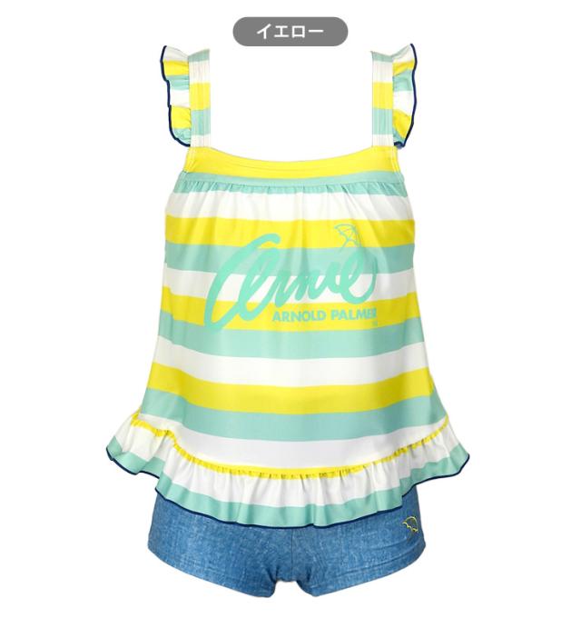 【メール便送料無料】Arnie Arnold Palmer キッズ ワンピース 水着 120 130 140 ピンク イエロー パープル 312201 アーニー アーノルドパーマー タンキニ ノースリーブ ショートパンツ 短パン パンツ一体型 ボーダー フリル ロゴ 子供 女児 女の子黄色 紫 sw3696