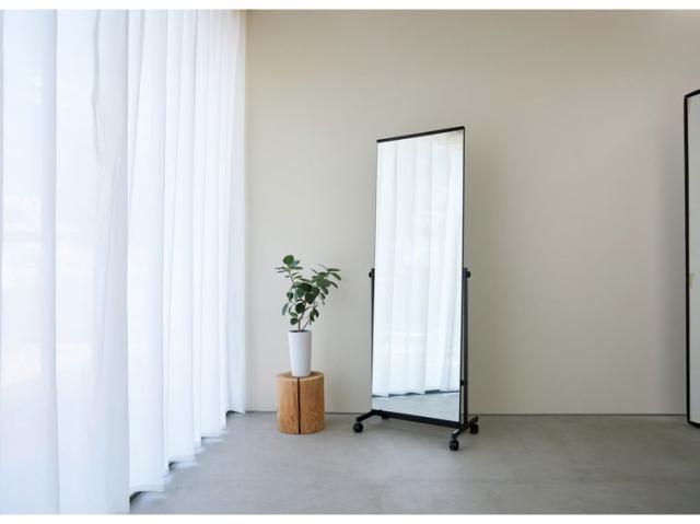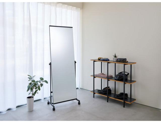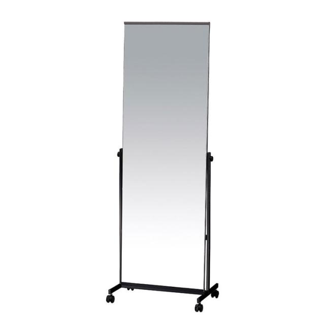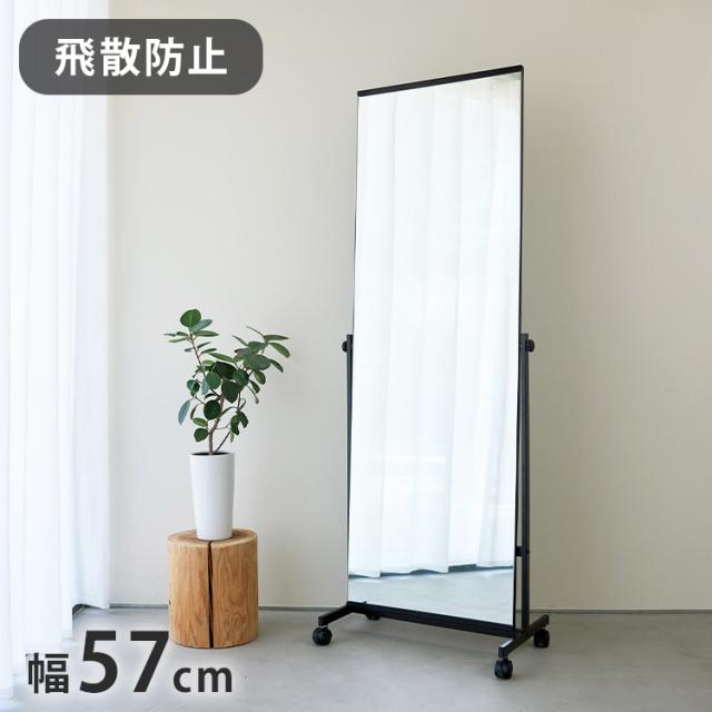 スタンドミラー 大型 幅57 奥行き36 高さ158.5 ミラー 鏡 全身鏡 姿見 スチール製 スチールフレーム キャスター付 ストッパー付 飛散防止 おしゃれ シンプル(代引不可)【送料無料】