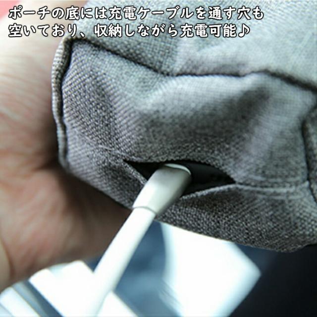 ポーチの底には充電ケーブルを通す穴がありますので、スマホ や iQos アイコス プルームテック グロー 電子タバコ など 電子ギア を運転中に充電できとても便利です♪