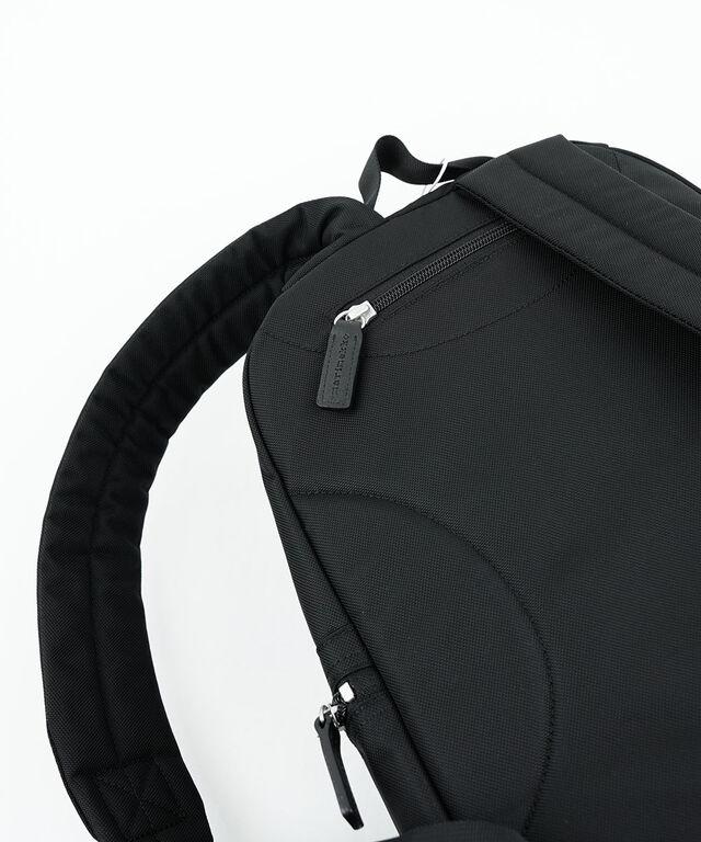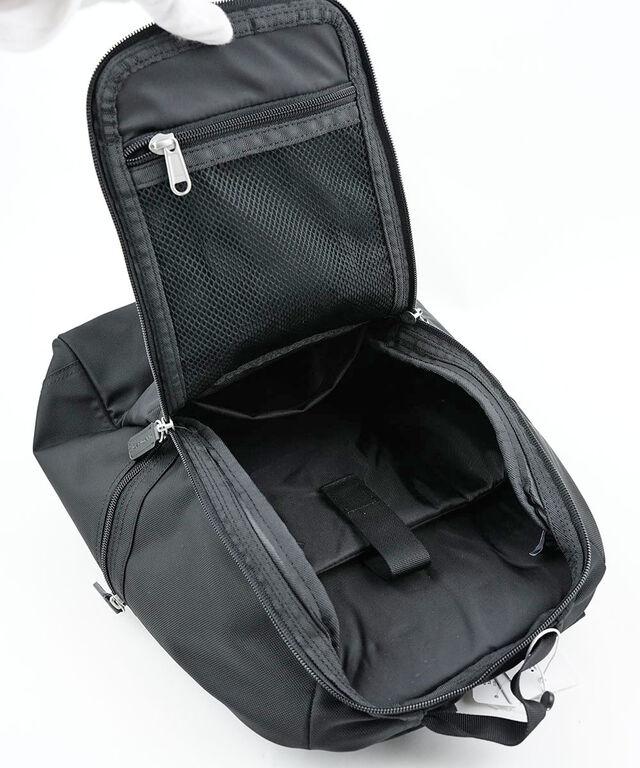 【特徴】外側:ファスナーポケット×2、背面ポケット×1、内側:ファスナーメッシュポケット×1、スリーブあり