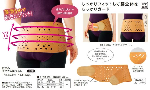 日本製 匠の心 天然ゴム腰ベルト 男女兼用 薄型 腰サポーター 腰サポート 腰サポーター 腰用 メンズ レディース 男性 女性 紳士 婦人 S M L LL 3L 腰ベルト ゴム