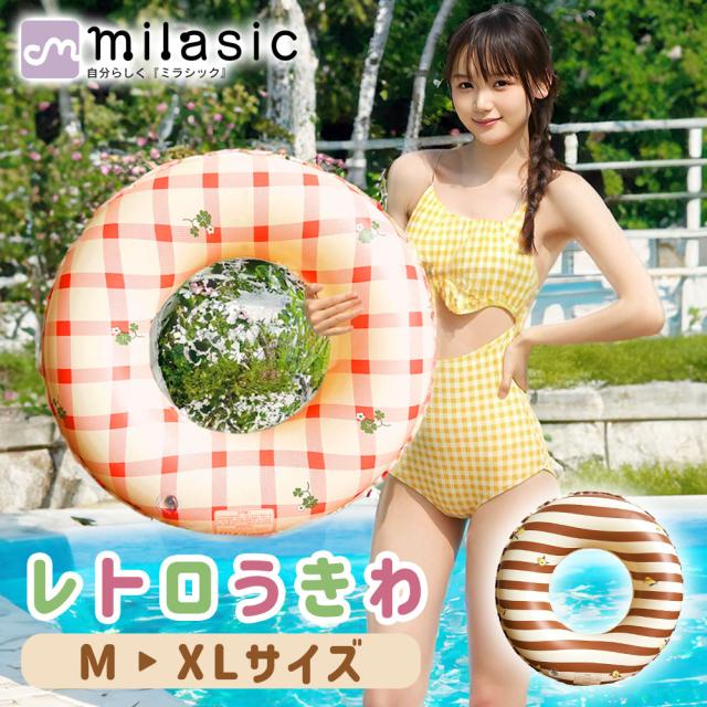【MILASIC公式】浮き輪 レトロ クラシック フロート O型 70 80 90 センチ ピンク チェック ブラウン ボーダー 子供 大人 ドーナツ型 浮輪 おしゃれ おとな こども かわいい プール 海 うきわ 可愛い お揃い シンプル スイムリング 玩具 アウトドア ビーチグッズ 遊び 夏