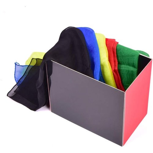 プラスチック製の板を組み立ててボックス状にすると、シルク(シルク製のハンカチ)が数枚わきだすように出現します。 さらに 小さいシルクが次々と大量にわきでるように出現します。