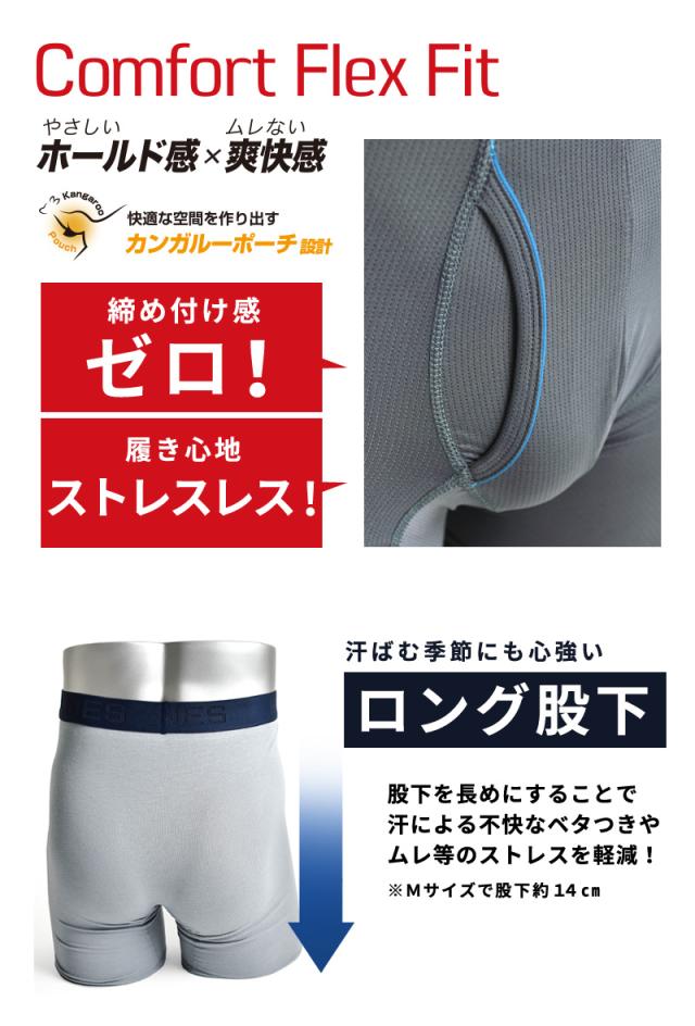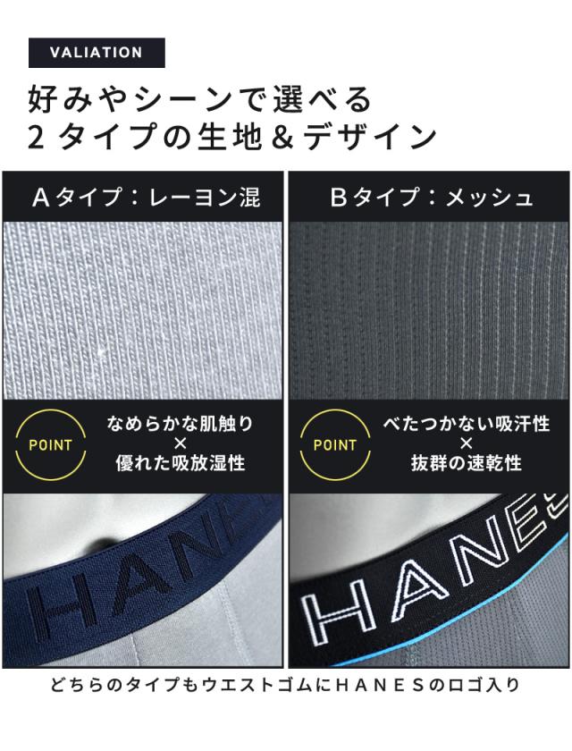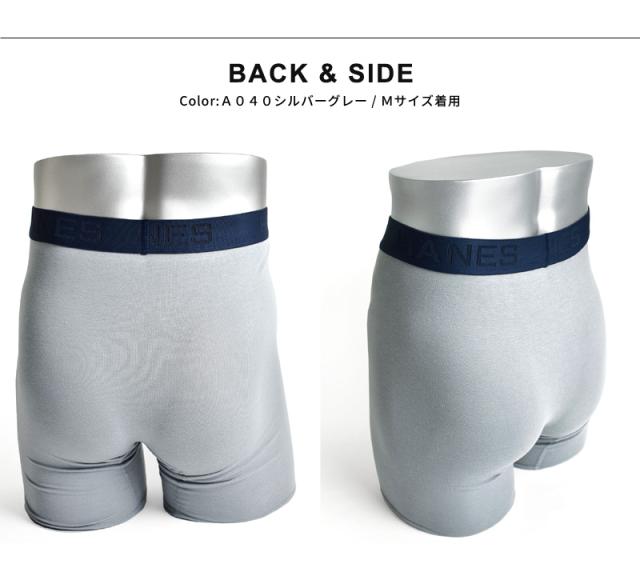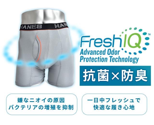 一日中フレッシュで快適な履き心地をサポートするHANESのボクサーブリーフ。抗菌防臭機能が嫌なニオイの原因となるバクテリアの増殖を抑制。カンガルーポーチ設計の優しいホールド感と安定感が快適な空間を作ります。股下はロング丈で汗のべたつきも軽減し、薄手のボトムやスーツ着用のシーンにも安心。
