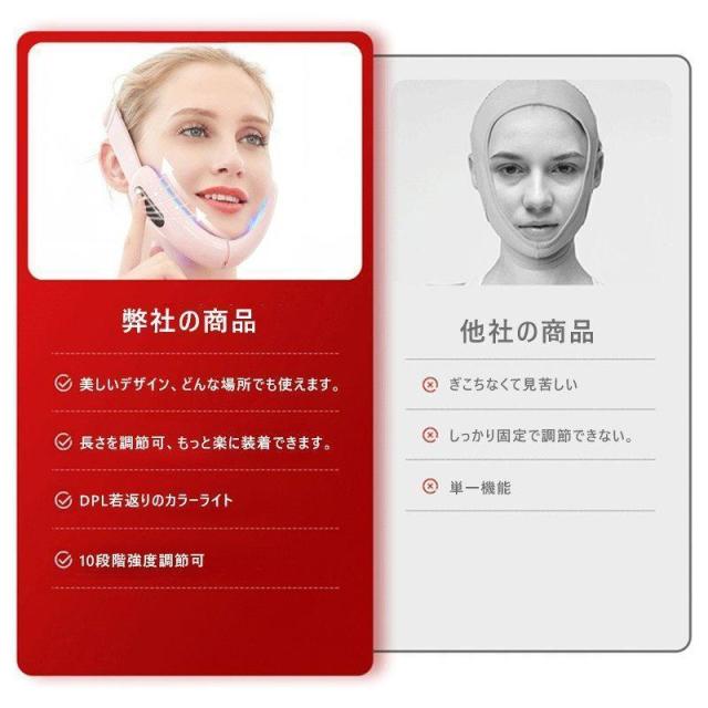 【V型設計】ストラップの長さを調節できます。伝統的な小顔器に対して、これはもっと柔軟に自分に合う角度に調整できます。もっと楽に装着してください、着用するとより美しくなります,使用効果もより顕著になります。ジェルはいらないです。