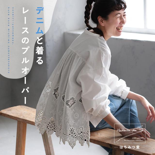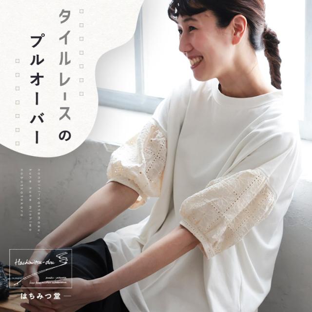 はちみつ堂 タイルレースのプルオーバー レディース カットソー カットソー Tシャツ 半袖 5分袖 パフスリーブ トップス