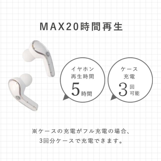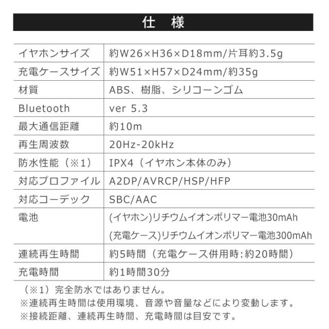 連続再生時間:約5時間(充電ケース併用時・約20時間)