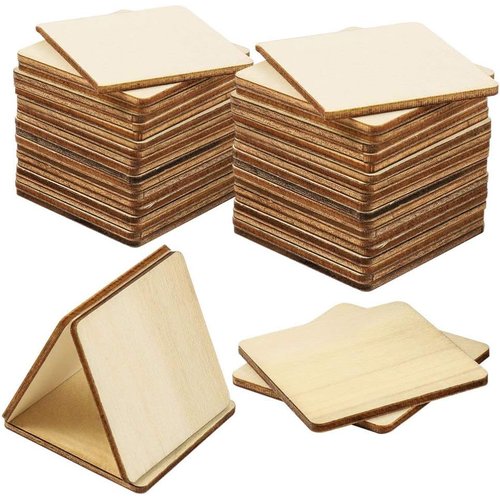 OUNONA 木材チップ 50枚入り 木製スライス 木片 DIY 四角 結婚式 パーティー 撮影用 小物 カード 装飾 工芸品 クラフト 素材 インテリア 家 部屋 木の板 木製ペンダント 手芸材料