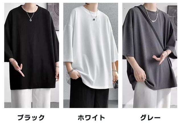 Tシャツ メンズ カットソー 夏服 涼しい ゆったり ビッグシルエット シンプル オシャレ 人気 無地 ファッション カジュアル トップス 父の日