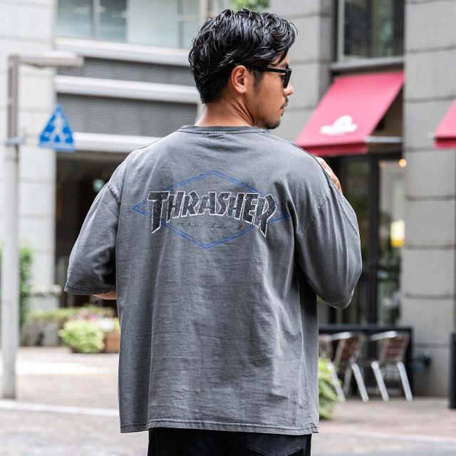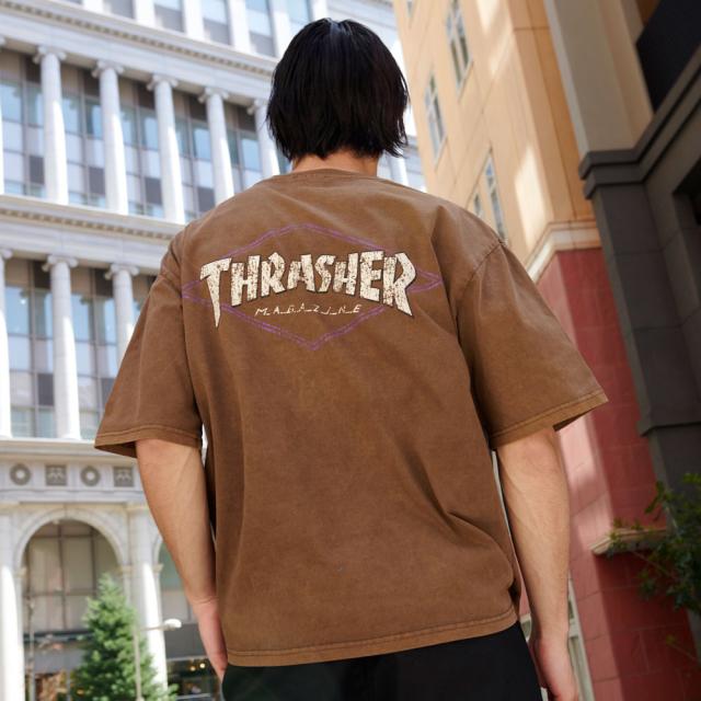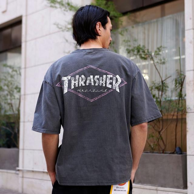 THRASHER スラッシャー Tシャツ メンズ 半袖 ブランド 半袖Tシャツ ゆったり プリント DIAMOND LOGO ダイヤモンドロゴ ピグメント加工 古着 ヴィンテージ ビンテージ 大きいサイズ M L 20代 30代 40代 ユニセックス 男性 男 服 春 夏 夏服 春夏 ファッション [TH25SU15]