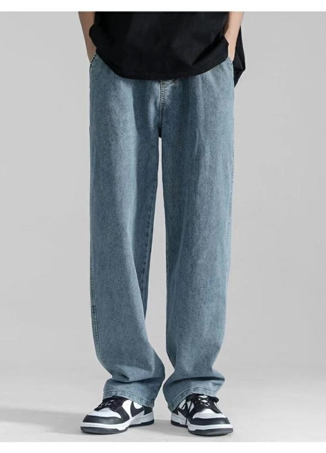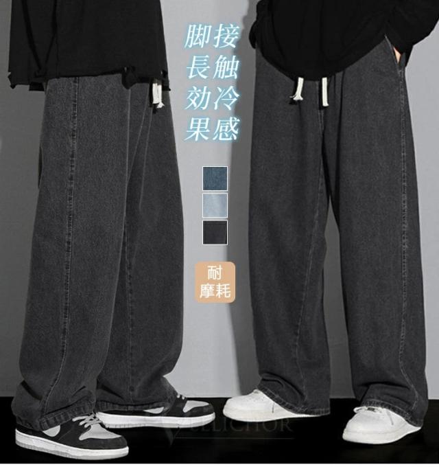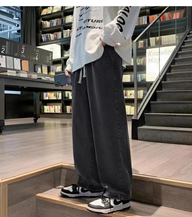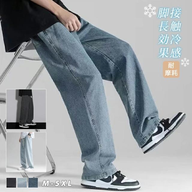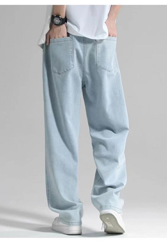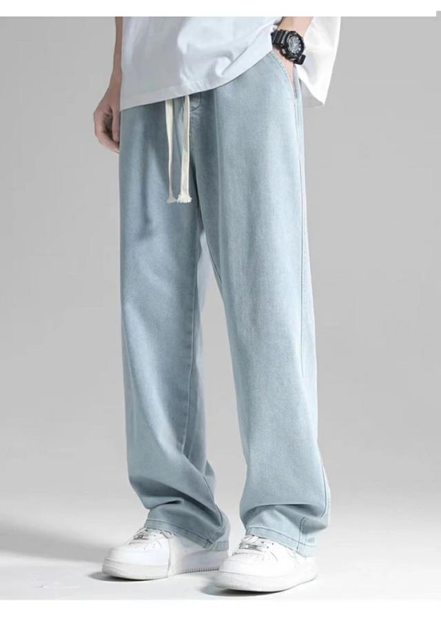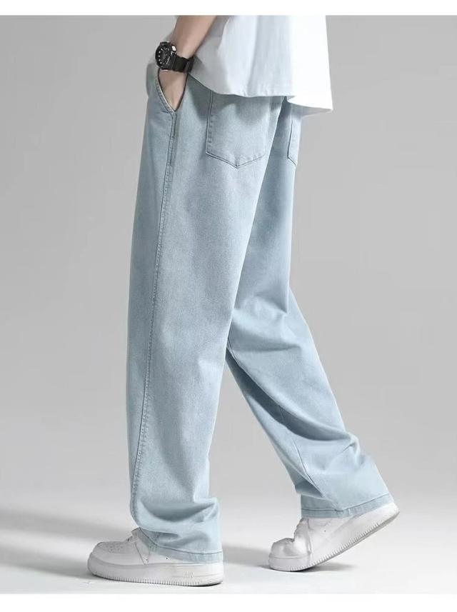 デニムパンツ メンズ ウェストゴム ジーパン 薄手 ボトムス おしゃれ ロング丈 体型カバー ゆったり ワイドパンツ 脚長効果 カジュアル ストレートパンツ