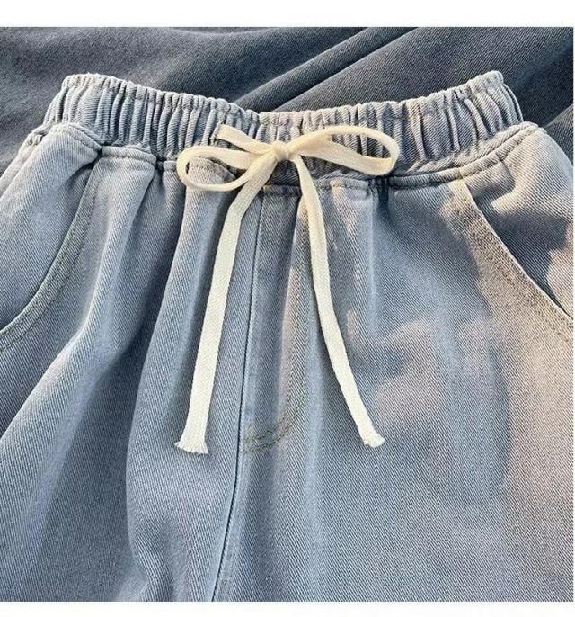 [デニム生地]年間通して履ける程よい生地感が良いジョガーパンツ、肌触りが柔らかく着心地も抜群の高品質コットン生地を使用して快適な穿き心地が楽しめます。(ダークブラックのウエストの紐は白と黒をランダム発送となりますのでご了承ください)