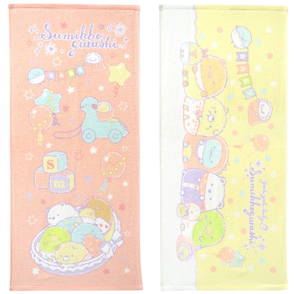 | set0814/女の子 すみっコぐらし キャラクター フェイスタオル 2枚組 ゆりかご×よちよちベビー ※2025年5月8日 色・柄が新しくなりました。 |