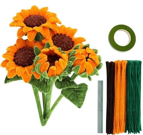 DIFEIUKI 手芸モール 300本 ひまわり DIY造花 花束 カラーモール 手作りキットお花 モールアート 曲げ可能 記念日 誕生日 母の