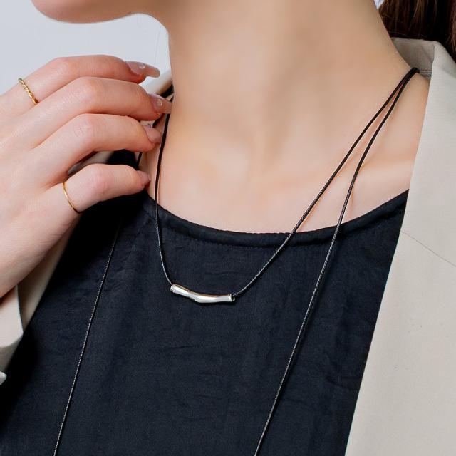 “ゆがみ”の効いたニュアンスメタルパイプとトレンドのコードを組み合わせたネックレス。 これひとつで普段のコーデを即旬顔にチェンジしてくれます◎お好みの長さに調節ができるフリーアジャスター仕様なのも嬉しいひと品。気分やスタイルに合わせてお楽しみいただけます。