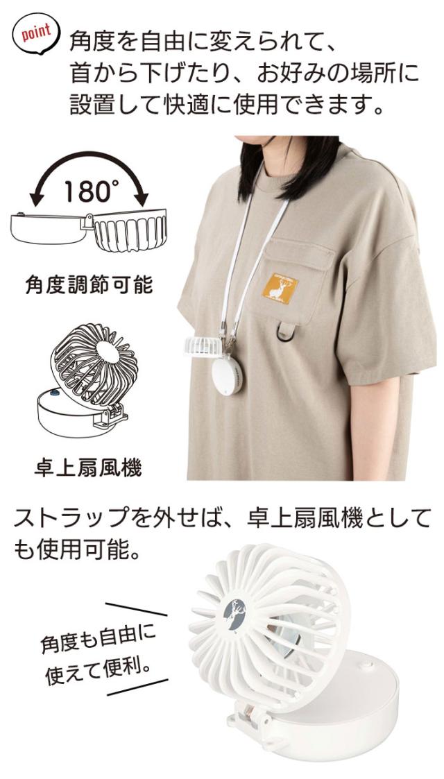 ストラップを外せば、卓上扇風機としても使用可能。