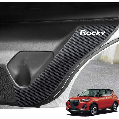 Hearsheng ダイハツ 新型ロッキー Rocky A200/A210系 2019年11月〜 専用レザー材質ドアキックガード インナードアプロテクション ドアトリムガード 運 内装パーツ カスタム 保護パーツ 汚れ防止 傷防止 取り付け簡単 車種専用設計 カーボン調 4点セット