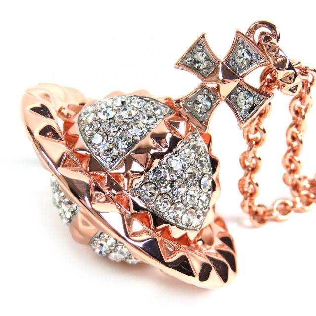 極美品△Vivienne Westwood ヴィヴィアンウエストウッド メイフェア ラージ オーブペンダント ラインストーン ネックレス ピンクゴールド