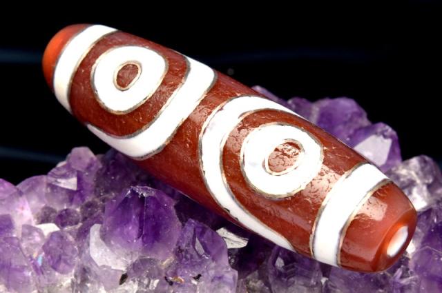 銀線天珠 赤天珠 48x14mm 三眼天珠 ビーズ 1個売り 【ネコポス送料無料】_PRG2254-1