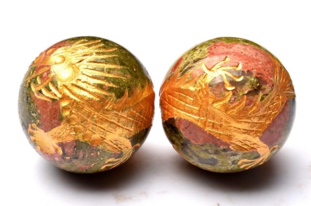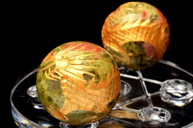 五爪皇帝龍 ユナカイト 29.5-30mm 金彫青龍 丸玉(台座付き) スフィア 1個売り _CRG169-4【宅急便のみ】
