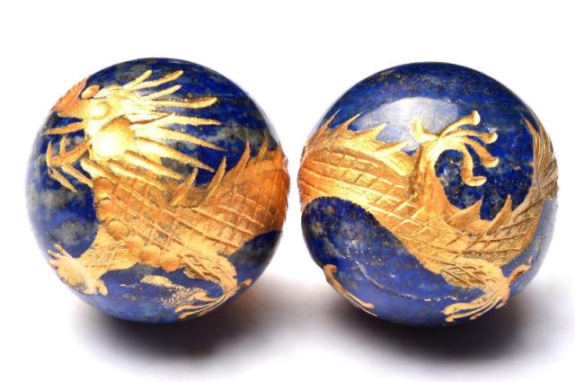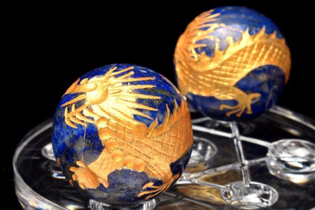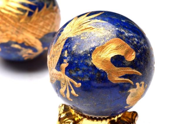 五爪皇帝龍 ラピスラズリ 30mm 金彫青龍 丸玉(台座付き) スフィア 1個売り 恋愛運・厄除け_CRG170-2【宅急便のみ】