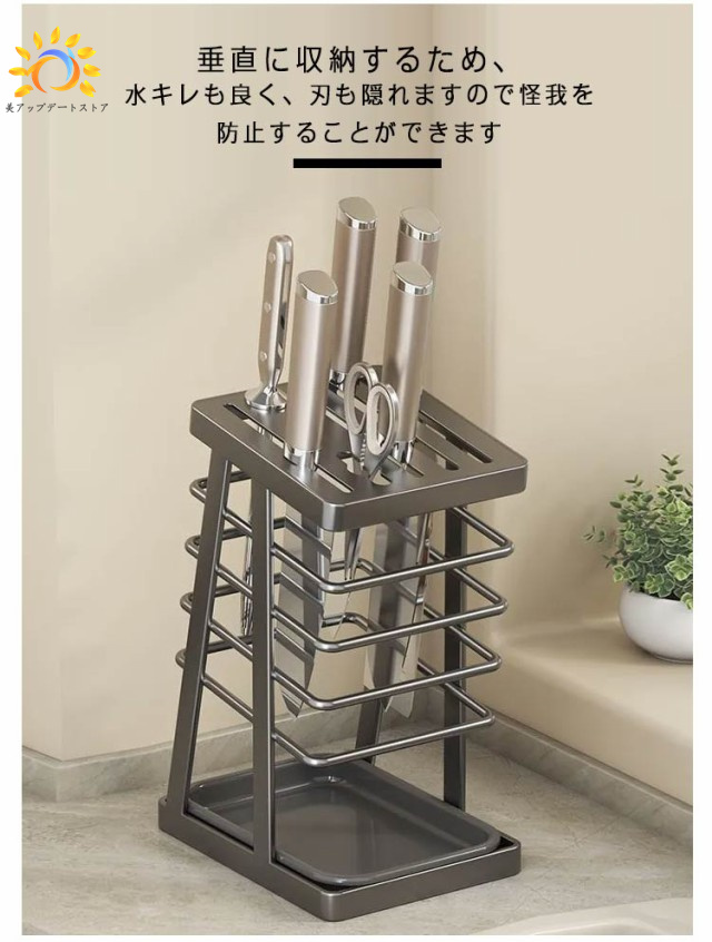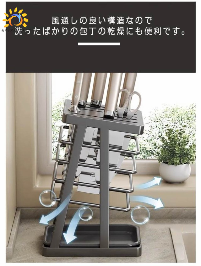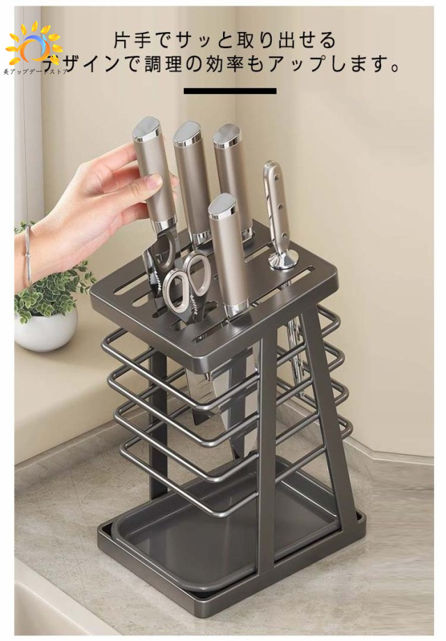 キッチンツール 包丁ホルダー 防カビ 包丁 包丁スタンド 包丁差し 包丁立て 包丁ラック 通気性 水切り 錆びにくい 整理整頓 ナイフ スタンド 包丁収納 ホルダ ナイフ収納 はさみ キッチンバサミ スタンド 包丁 シンプル 北欧風 トレー付き