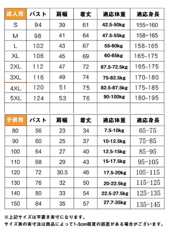 | サイズ | 80cm 90cm 100cm 110cm 120cm 130cm 140cm 150cm 成人S 成人M 成人L 成人XL 成人2XL 成人3XL 成人4XL 成人5XL |
