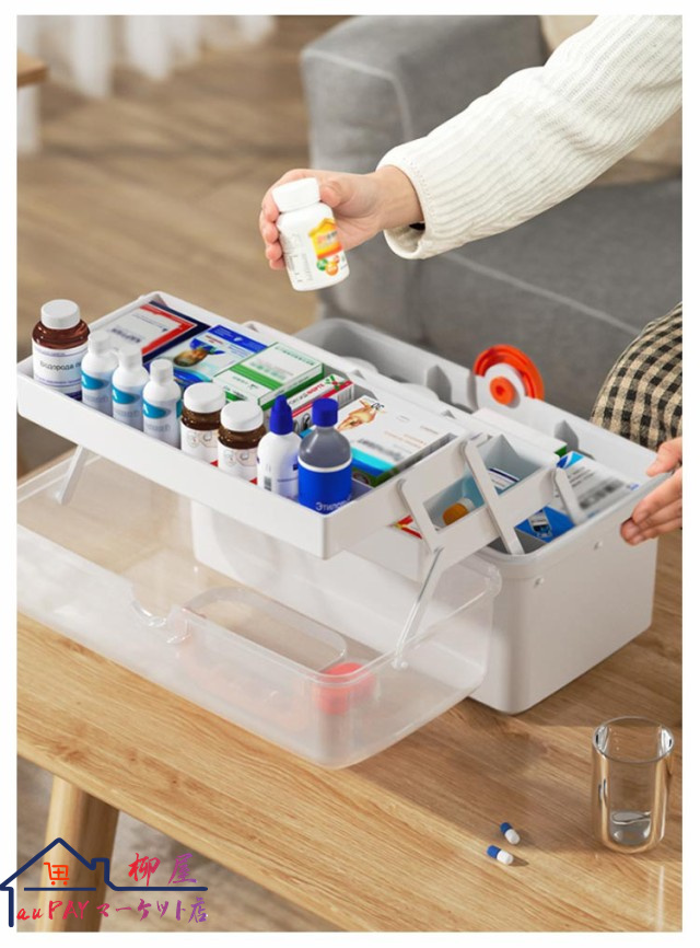 薬箱 救急箱 薬ケース 大容量 3層 3段 3層折り畳み式 おしゃれ 透明 多機能収納 収納ケース 収納ボックス 折り畳み式収納ケース 工具箱 透明 収納箱 取っ手付 折り畳み 携帯 便利 薬入れ 小物入れ 緊急 防災 家庭用 送料無料