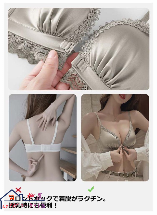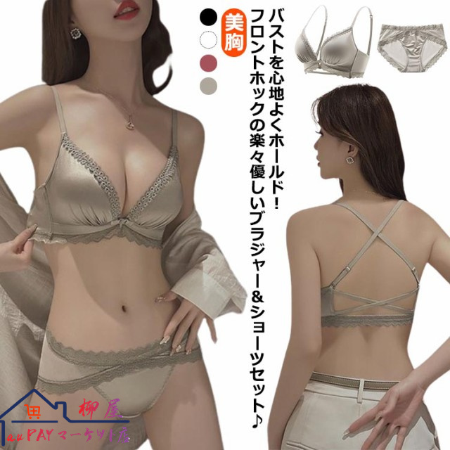 ノンワイヤー 送料無料 ブラ フロントホック セット インナー ワイヤレスブラ Tシャツブラ ノンワイヤーブラ ショーツ 3/4カップ 大きいサイズ 胸元メイク 美胸 ランジェリー 小胸 ブラジャー