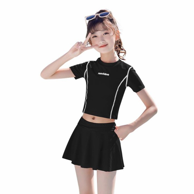 子供水着 おしゃれ 女子 ジュニア キッズ 水着セット 上下セット 女の子 セパレート水着 2点セット ブラック ピンク タンキニ 大人っぽい 小学生 中学生