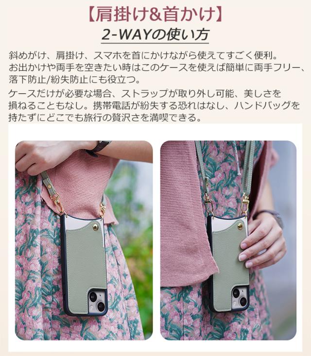 斜めがけ、肩掛け、スマホを首にかけながら使えてすごく便利。落下防止/紛失防止にも役立つ。ケースだけが必要な場合、ストラップが取り外し可能、美しさを損ねることもなし。