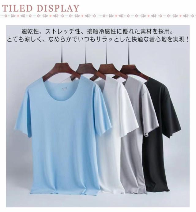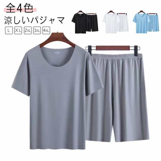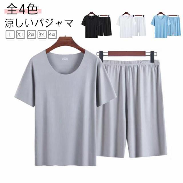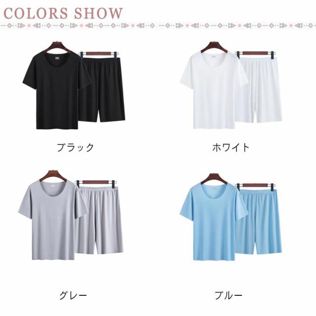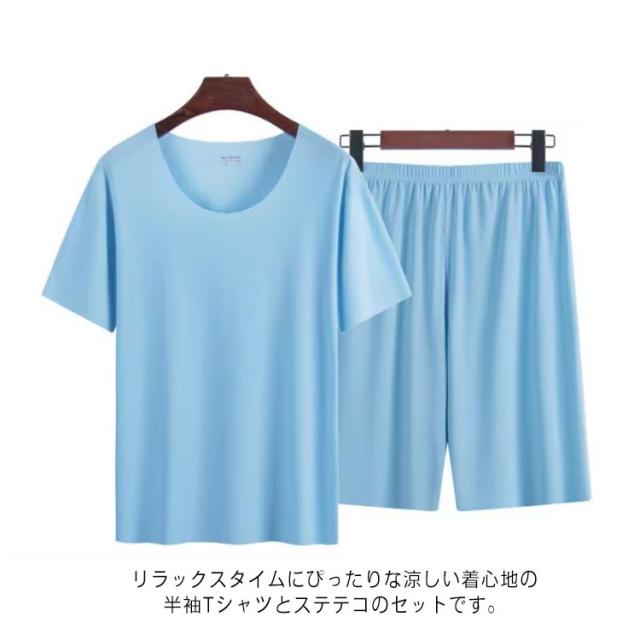 アイスシルク ステテコ 上下セット 部屋着 メンズ パジャマ 男性 夏 ルームウェア ひんやり 薄手 半袖 冷感 ラウンドネック ストレッチ 大きいサイズ 軽い ハーフパンツ 快適 Tシャツ 寝巻き 涼しい 肌着 柔らかい