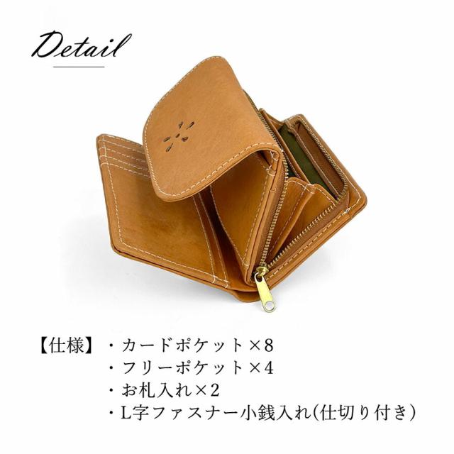 二つ折り財布 レディース ブランド 本革 レザー 49963 zucchero ズッケロ Garnet ガーネット かぶせ二つ折り財布 牛革 革財布 ホック ボタン 大容量 カード収納 L字ファスナー小銭入れ 実用的 ナチュラル おしゃれ シンプル 女性 ママ お母さん おばあちゃん プレゼント