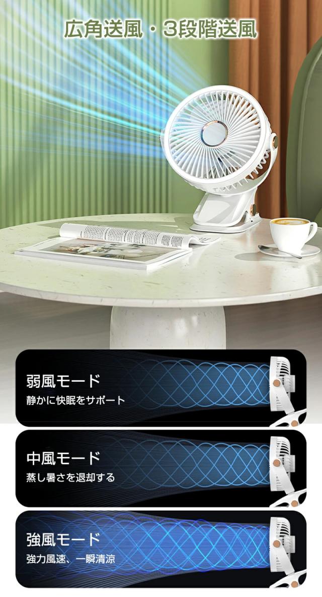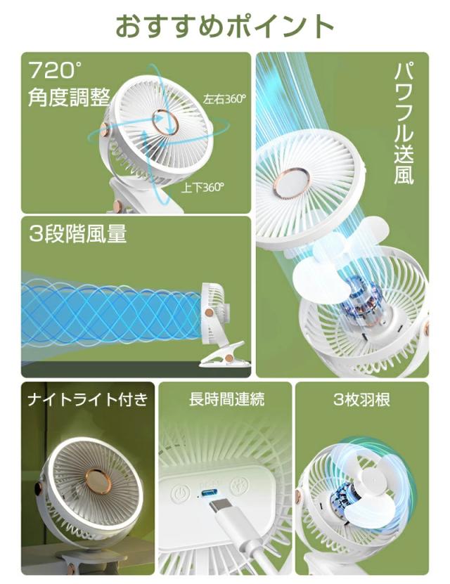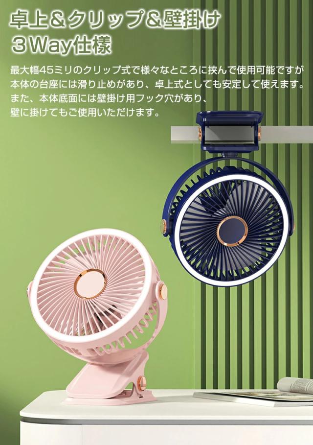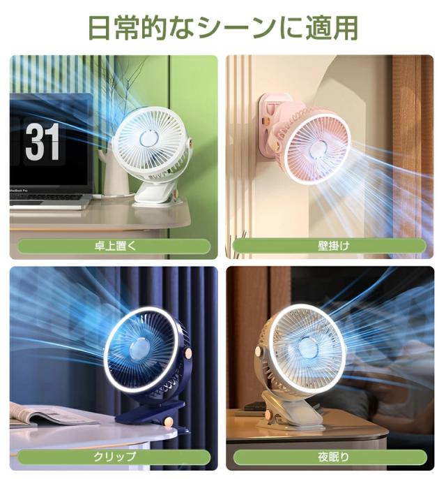 壁掛け扇風機 洗面所 トイレ用 扇風機 クリップ扇風機 小型 卓上 静音 給電式 充電式 扇風機 LEDライト付き 1台4役 卓上置く