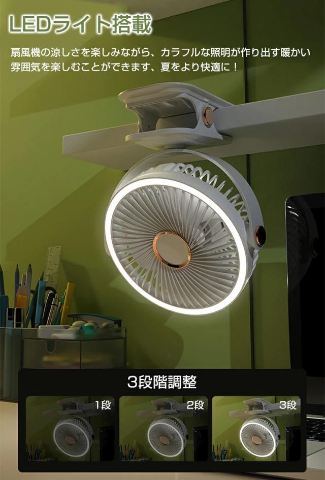 壁掛け扇風機 洗面所 トイレ用 扇風機 クリップ扇風機 小型 卓上 静音 充電式 扇風機 LEDライト付き 1台4役 卓上置く 壁掛け 5段階風量 クリップ 強力 壁掛けサーキュレーター キッチン用 洗面所 アウトドア 熱中症対策 台所 寝室 トイレ